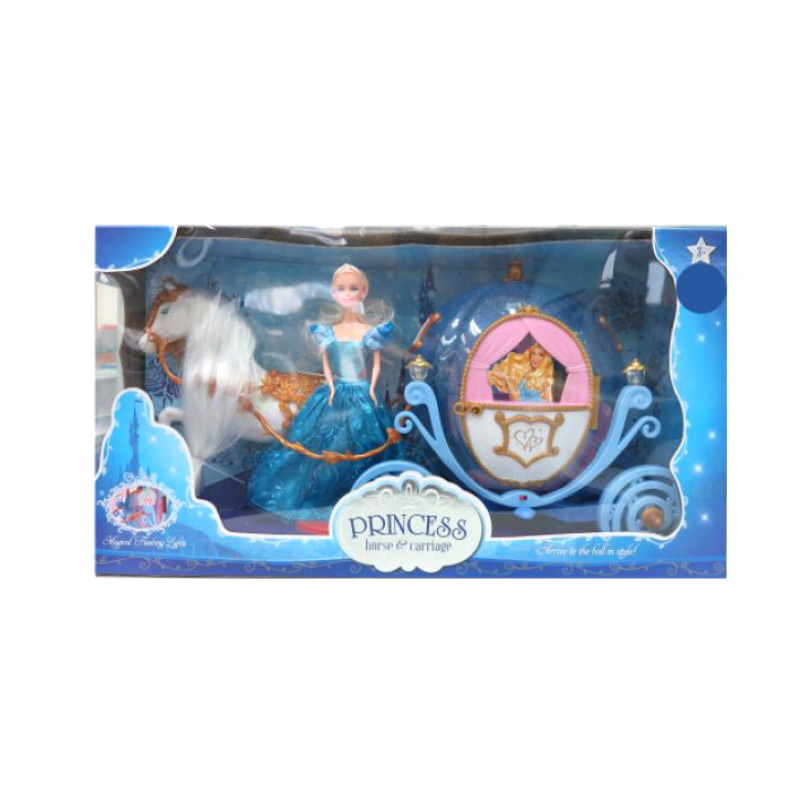 Barbie Set Poupee Princesse Chariot Et